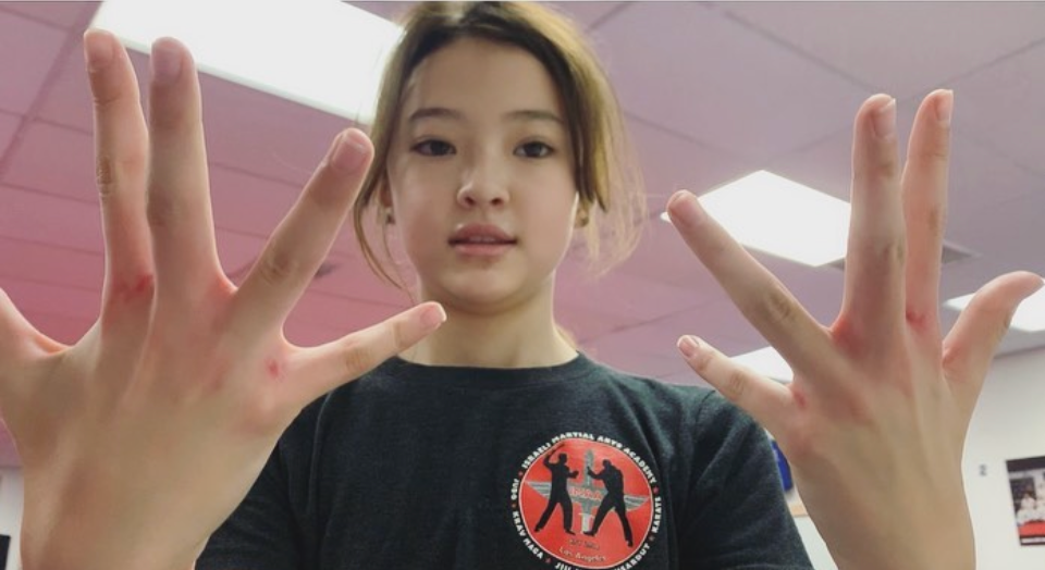 격한 복싱으로 손가락 마디 끝에 상처가 난 모습